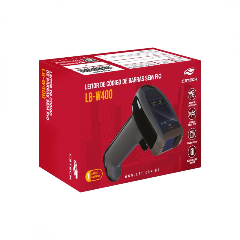 LEITOR CÓDIGO BARRAS 1D/2D SEM FIO+BLUETOOTH C3TECH MOD LB-W400BK